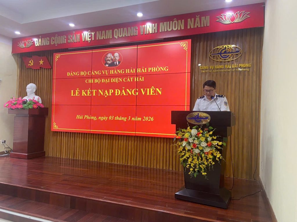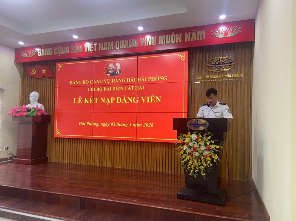 Sáng ngày 03/3/2026, được sự đồng ý của Đảng ủy Cảng vụ Hàng hải Hải Phòng, Chi bộ Đại diện Cát Hải đã tổ chức Lễ kết nạp đảng cho quần chúng ưu tú Nguyễn Thành Luân.