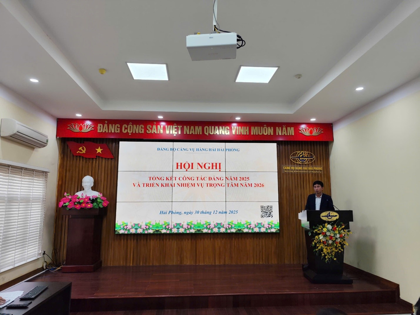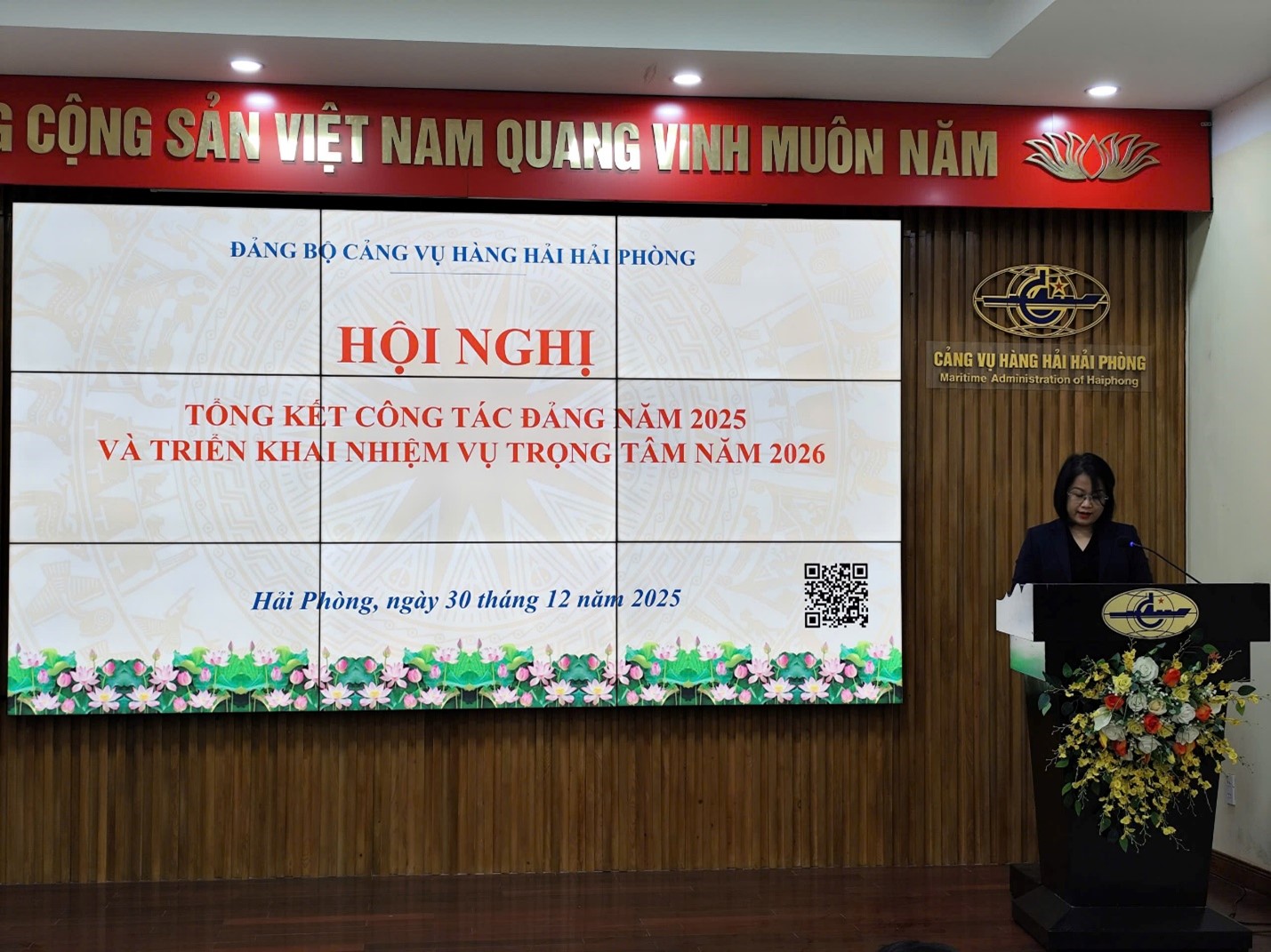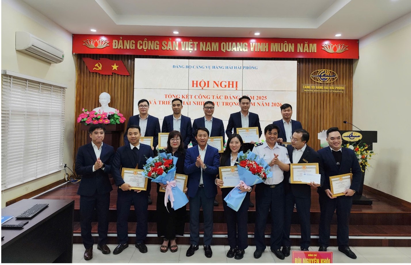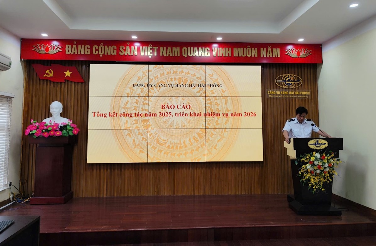 Thực hiện Hướng dẫn số 02-HD/ĐU ngày 05/12/2025 của Đảng uỷ Cục Hàng hải và Đường thuỷ Việt Nam, ngày 30/12/2025, Đảng bộ Cảng vụ Hàng hải Hải Phòng đã long trọng tổ chức Hội nghị tổng kết công tác năm 2025, triển khai nhiệm vụ trọng tâm năm 2026. Tham dự và chỉ đạo Hội nghị có đồng chí Bùi Nguyên Khôi, Ủy viên BCH Đảng bộ Cục Hàng hải và Đường thuỷ Việt Nam, Bí thư Đảng ủy, Giám đốc Cảng vụ Hàng hải Hải Phòng cùng các đồng chí trong Ban Chấp hành Đảng bộ, Ủy ban kiểm tra, các đồng chí Bí thư Chi bộ, BCH Chi đoàn thanh niên cùng toàn thể Đảng viên trực thuộc Đảng bộ Cảng vụ Hàng hải Hải Phòng.
